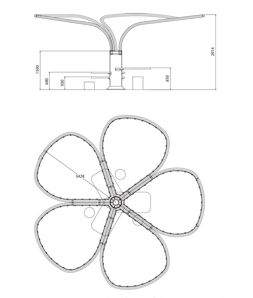 This structure offers opportunities for rest and socialization, providing shade and support for tabletop games and activities with a modular, simple, and accessible layout. In the “Cantastorie” version, users can connect USB memory devices to play audio and music content.